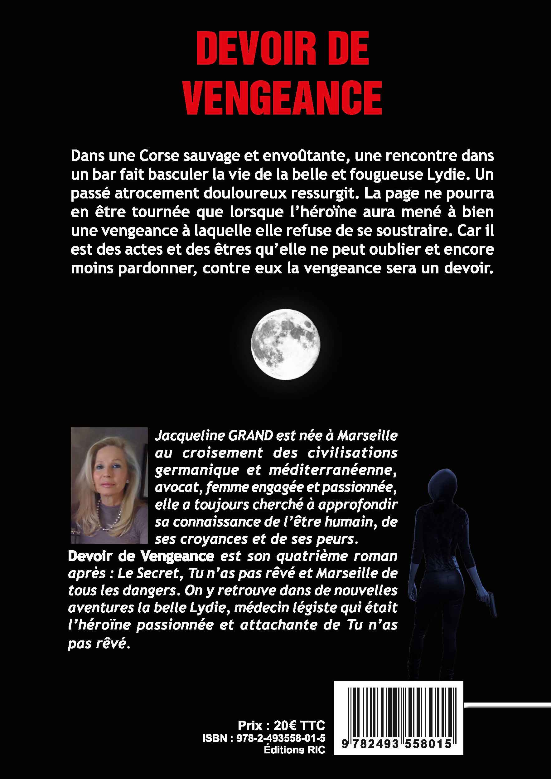 Dans une Corse sauvage et envoûtante, une rencontre dans un bar fait basculer la vie de la belle et fougueuse Lydie. Un passé atrocement douloureux ressurgit. La page ne pourra en être tournée que lorsque l’héroïne aura mené à bien une vengeance à laquelle elle refuse de se soustraire. Car il est des actes et des êtres qu’elle ne peut oublier et encore moins pardonner, contre eux la vengeance sera un devoir.