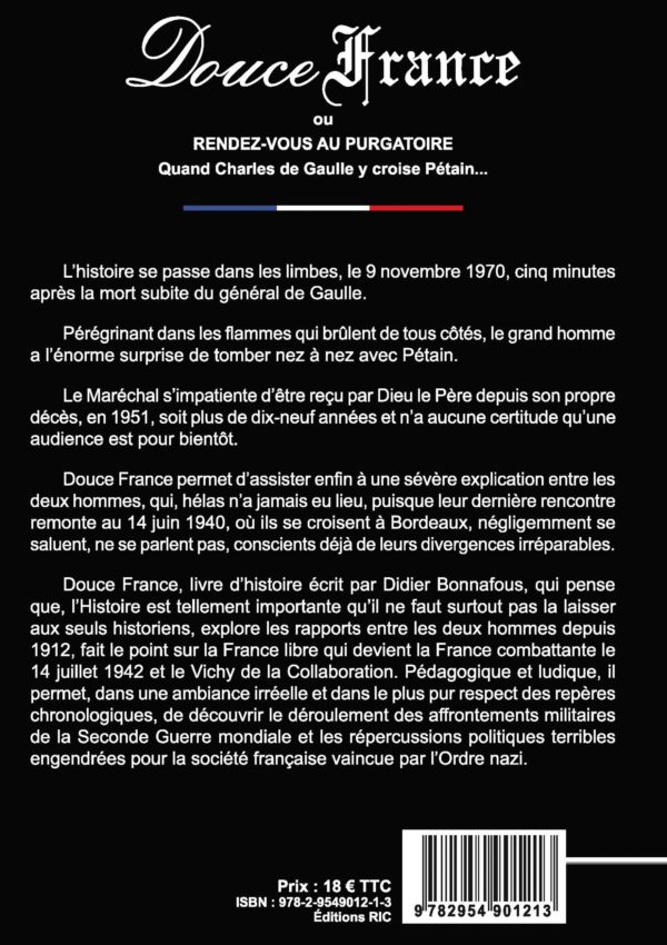 Douce France, livre d’histoire écrit par Didier Bonnafous, qui pense que, l’Histoire est tellement importante qu’il ne faut surtout pas la laisser aux seuls historiens, explore les rapports entre les deux hommes depuis 1912, fait le point sur la France libre qui devient la France combattante le 14 juillet 1942 et le Vichy de la Collaboration. Pédagogique et ludique, il permet, dans une ambiance irréelle et dans le plus pur respect des repères chronologiques, de découvrir le déroulement des affrontements militaires de la Seconde Guerre mondiale et les répercussions politiques terribles engendrées pour la société française vaincue par l’Ordre nazi.