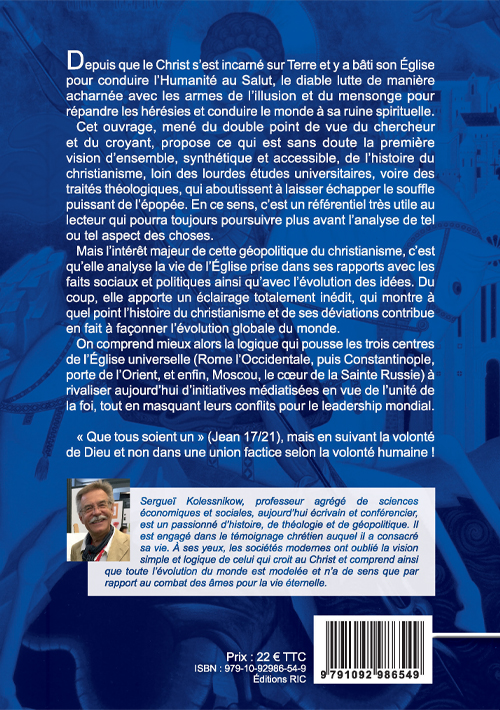 Sergueï Kolessnikow, professeur agrégé de sciences économiques et sociales, aujourd’hui écrivain et conférencier, est un passionné d’histoire, de théologie et de géopolitique. Il est engagé dans le témoignage chrétien auquel il a consacré sa vie. À ses yeux, les sociétés modernes ont oublié la vision simple et logique de celui qui croit au Christ et comprend ainsi que toute l’évolution du monde est modelée et n’a de sens que par rapport au combat des âmes pour la vie éternelle.