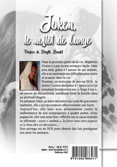 Dans la première partie de sa vie, Stéphanie Ziranu n’a pas eu une existence facile. Mais plus tard, grâce à l’amour de ses enfants, elle a su surmonter ses difficultés pour mûrir et avancer dans la vie. Pourtant, un triste jour de janvier 2016, le destin l’a mise durement à l’épreuve en lui arrachant brutalement son « Ange Lina », un amour de dalmatienne, entraînant toute la famille dans un profond chagrin. En adoptant Joker, un autre dalmatien qui avait été gravement maltraité, elle a pu …