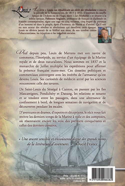 La série « Louis, un républicain au siècle des révolutions » couvre la période de la Restauration, de 1815 à 1852. S’inspirant du souffle épique de Dickens ou de Hugo, dont « Les Misérables » se situent à la même époque, Fabienne Anglaret, professeur de français et diplômée en histoire contemporaine, signe une saga en cinq volumes, cinq étapes du parcours d’un homme né dans le peuple, épris d’honneur, de liberté et d’amitié. Qu’il soit ou non acteur des révoltes et révolutions qui émaillent cette époque, Louis ne déviera jamais de sa fidélité aux siens, de son combat contre l’obscurantisme, les injustices et les inégalités sociales.